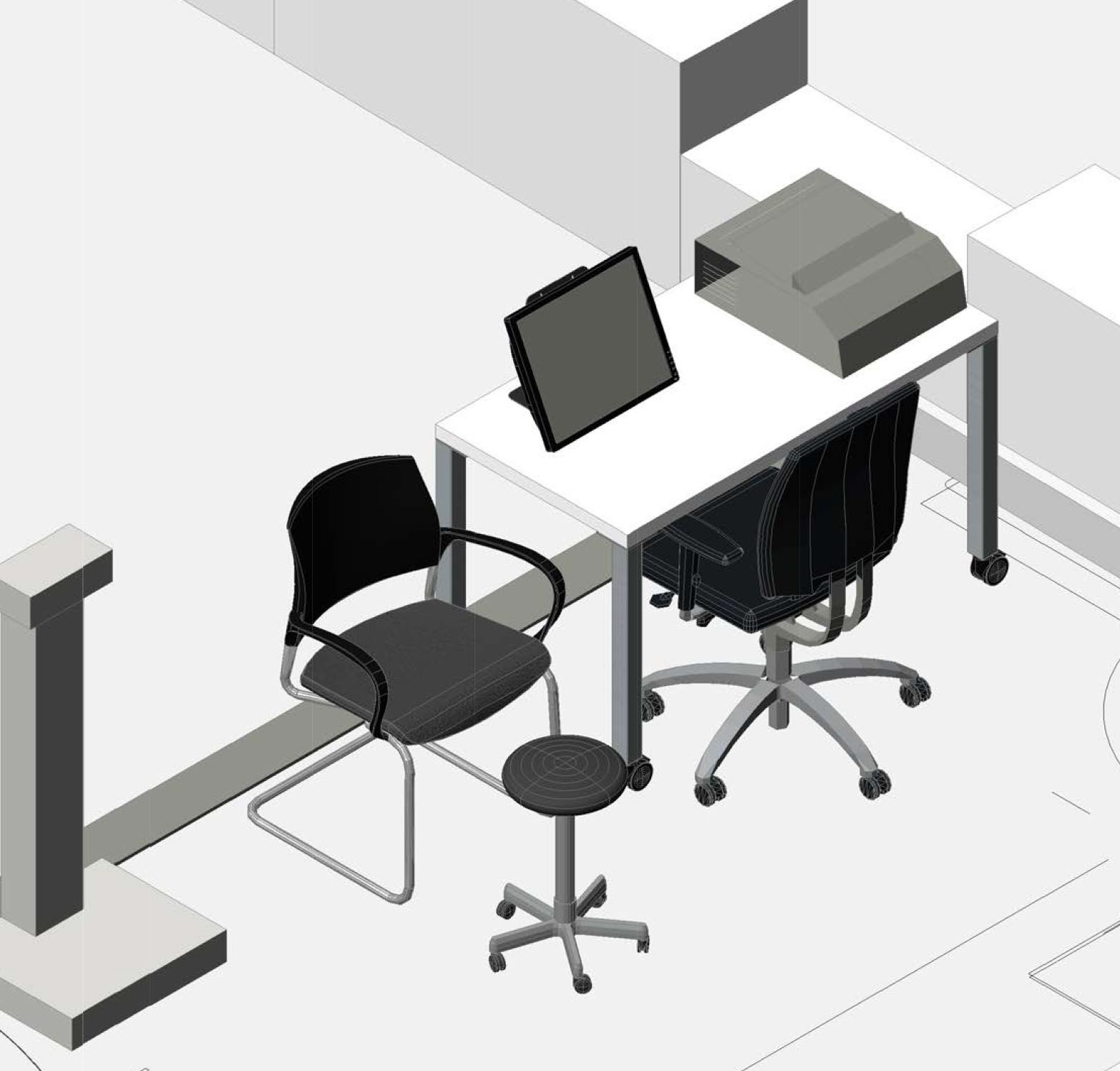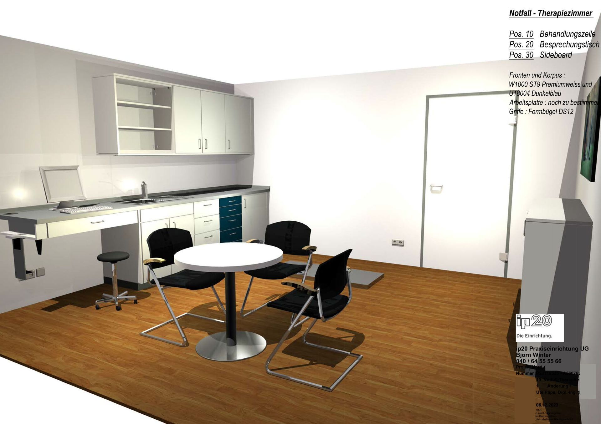 Beratungszimmer einer Praxis für Diabetologie – hier wird der Patient über den täglichen Umgang mit seiner Erkrankung informiert. Das höhenverstellbare Tischgestell ist im Praxisbereich eher ungewöhnlich, doch wird der Raum ohne Patientenverkehr auch als Büro der Beraterin genutzt.